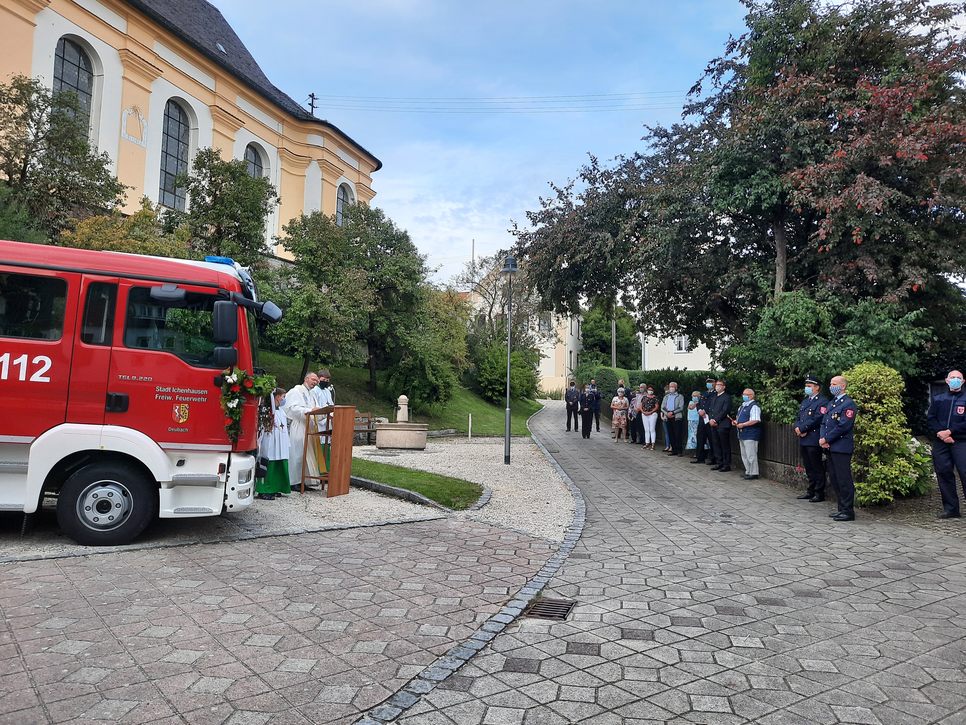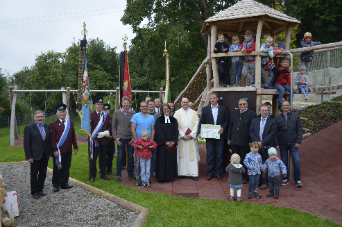 Pater Shiju, die Fahnenabordnungen der Deubacher und Ebersbacher Vereine,